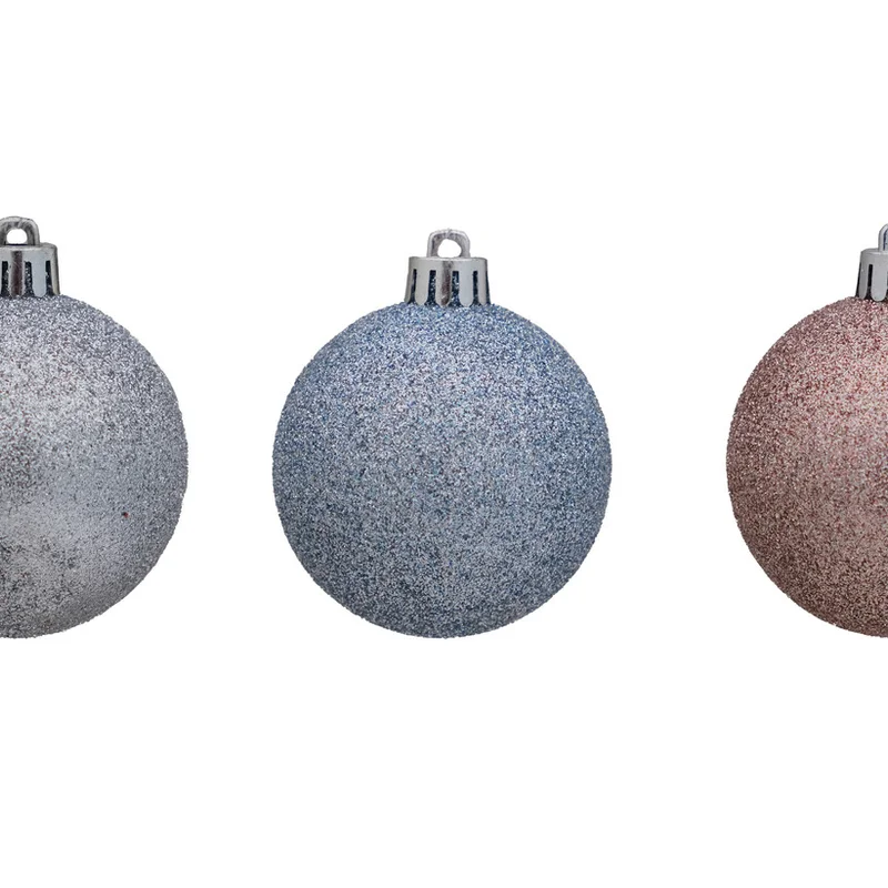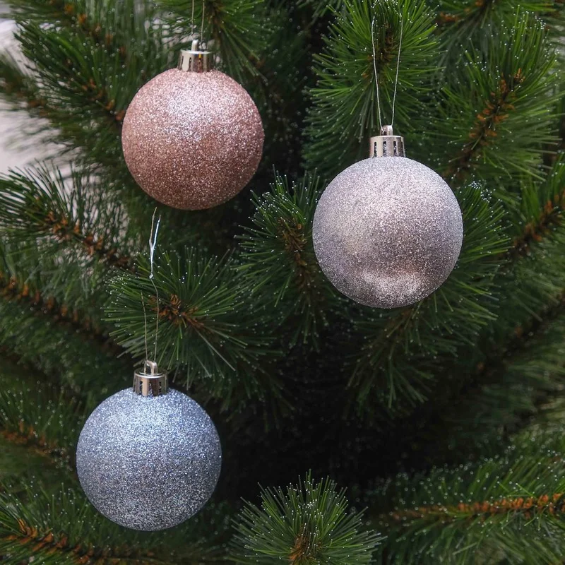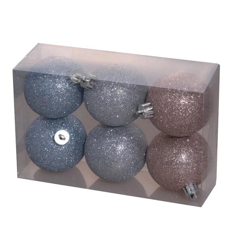 Ялинкові пластикові кульки Chomik комплект 6 шт, Ø 6 см, блакитний, рожевий, сріблястий