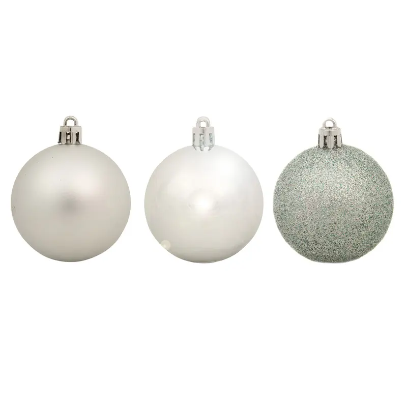 Ялинкові кульки — невід'ємний новорічний елемент декору, без якого складно уявити різдвяну атмосферу. У нашому комплекті — казкове поєднання сріблястих кульок середнього розміру із різним покриттям, які особливо вдало виглядають на фоні зеленої хвої, а також впишуться у будь-який інтер'єр. Залишається лише вдягнути прикраси на вашу ялиночку!