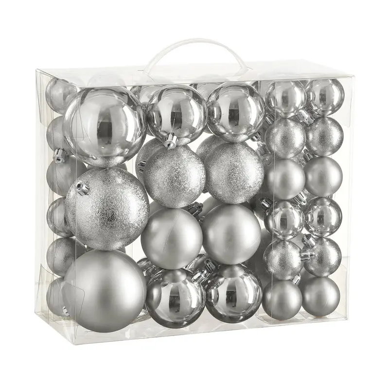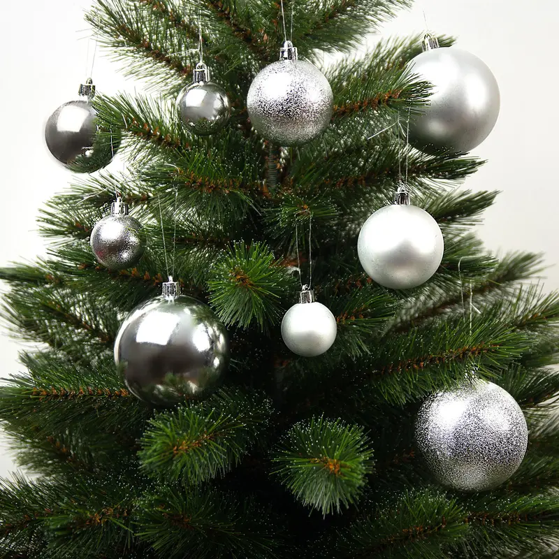 Ялинкові кульки — невіддільний новорічний елемент декору, без якого складно уявити різдвяну атмосферу. Особливістю набору є різноманіття розмірів (Ø 4/6/8 см) та покриттів (матові - 14 шт; глянцеві - 18 шт; рельєфні блискучі - 14 шт) пластикових кульок, представлених у приємному сріблястому відтінку*, що дозволяє стильно оздобити новорічне дерево у повноцінну святкову композицію. Комплект особливо вдало виглядає на фоні зеленої хвої, а також впишеться у будь-який інтер'єр — залишається лише вдягнути кульки на вашу ялиночку!Прикраси ТМ House of Seasons — чудовий елемент декору як для новорічного дерева, так і для святкового оздоблення оселі чи офісу, що створять затишок та принесуть позитивний настрій. Асортимент підібраний з урахуванням можливості поєднання різних серій прикрас ТМ House of Seasons.*Реальний колір товару може дещо відрізнятися від зразків представлених на сайті залежно від технічних налаштувань Вашого екрану, а також, зважаючи на особливості матеріалу, відтінок товару може змінюватися залежно від освітлення.