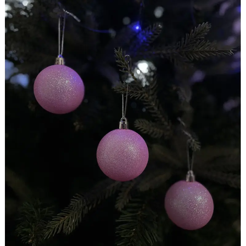 Ялинкові пластикові кульки "Jumi" комплект 18 шт, Ø 5 см, рожеві з блискітками