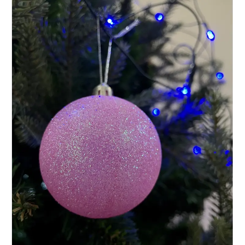 У нашому комплекті — вісімнадцять кульок середнього розміру рожевого відтінку, які особливо вдало виглядають на фоні зеленої хвої, а також стануть чудовим акцентом на новорічному дереві. Кульки декоровані блискучим перламутровим покриттям, що грає сяючими переливами при потраплянні світла — казковий ефект забезпечено!