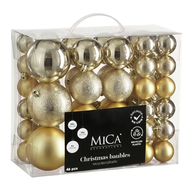 Ялинкові пластикові кульки Mica Decorations комплект 46 шт, Ø 4/6/8 см, шампань