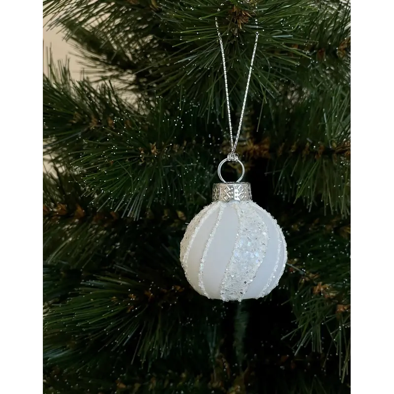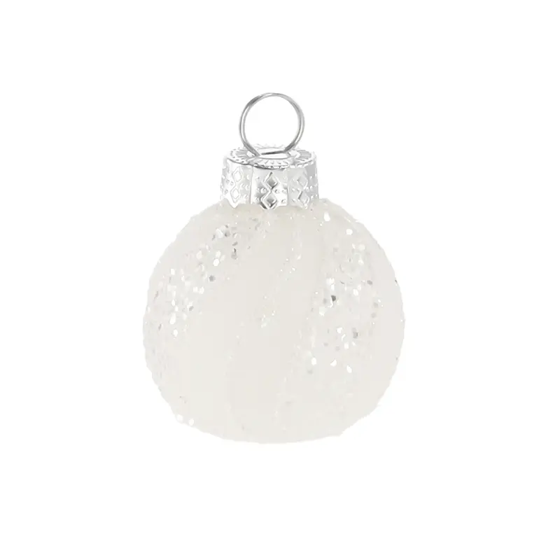Ялинкові скляні кульки "Chomik" комплект 6 шт, Ø 4 см, білі з блискітками