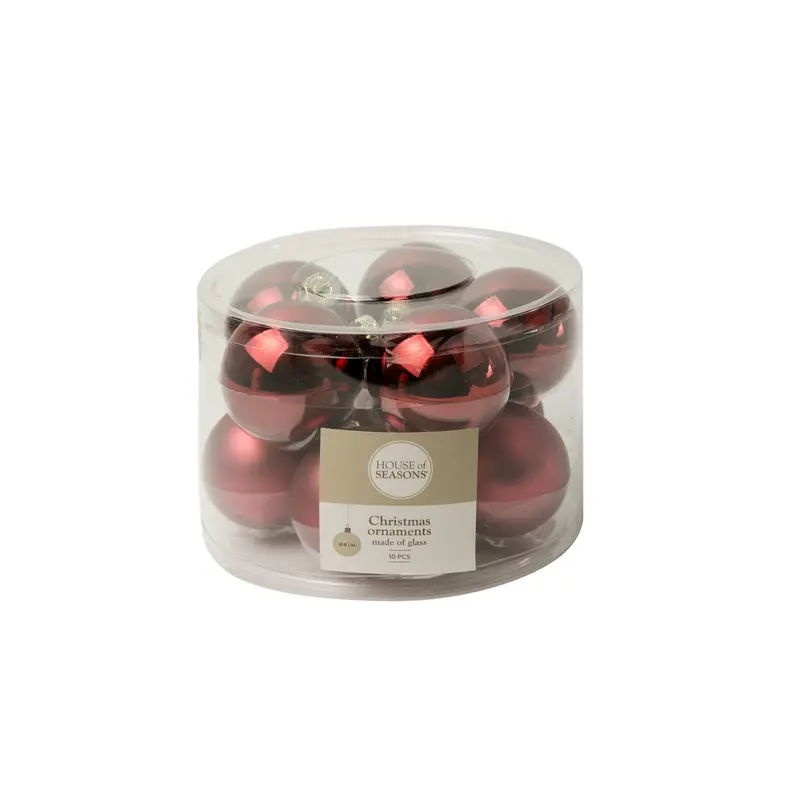 Ялинкові скляні кульки "House of Seasons" комплект 10 шт, Ø 6 см бордові