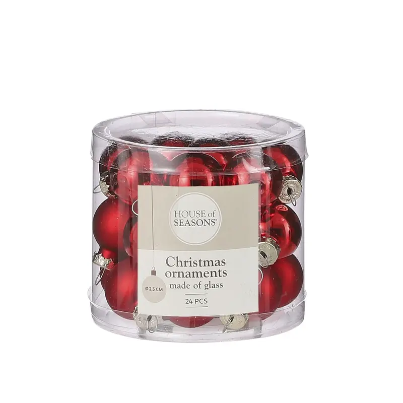 Ялинкові скляні кульки "House of Seasons" комплект 24 шт, 2,5 см, червоні