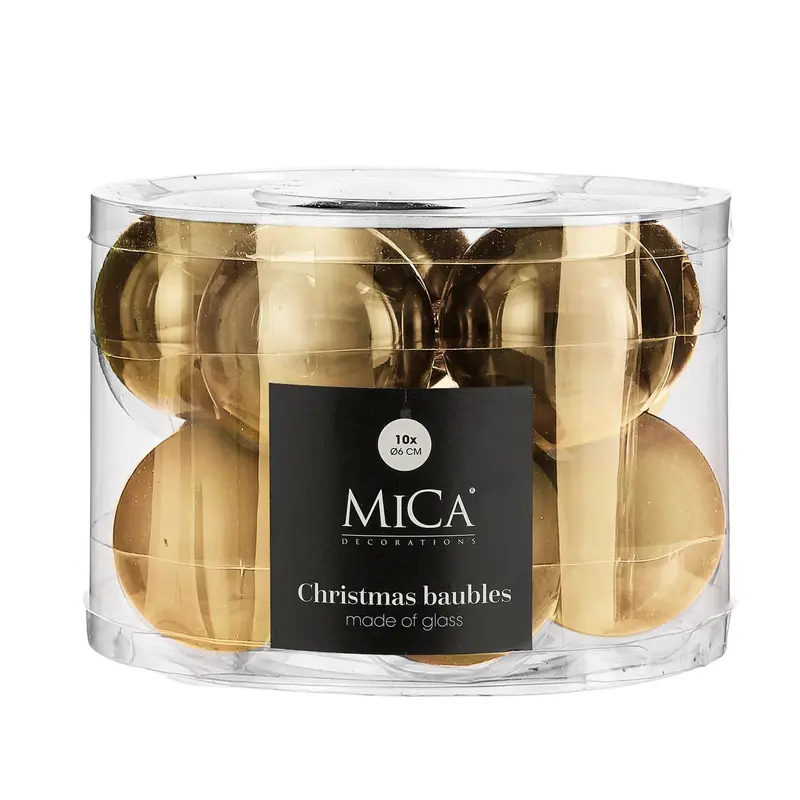 Ялинкові скляні кульки Mica Decorations компл. 10 шт, Ø 6 см, золоті