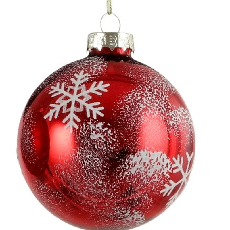 Ялинкові скляні кульки Сніжинка, в ас., Ø 7 см., "House of Seasons", червоні, глянц.