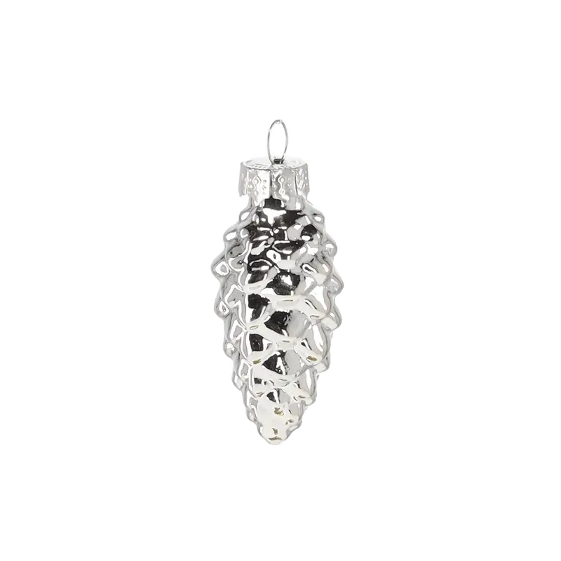Ялинкові скляні прикраси Chomik Шишки комплект 16 шт, 3х6 см, срібні