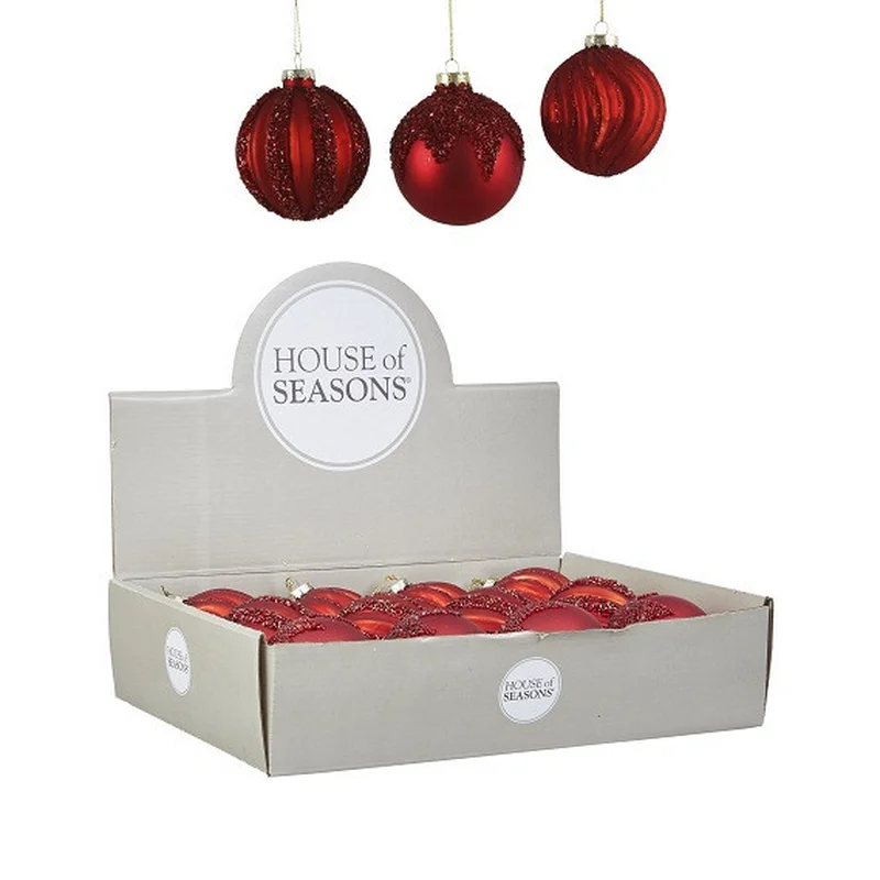 Ялинкові стеклянні кульки червоні в ас., Ø 8 см., "House of Seasons", Хвиля