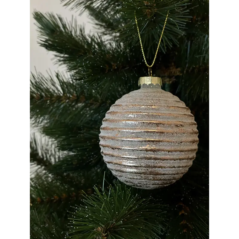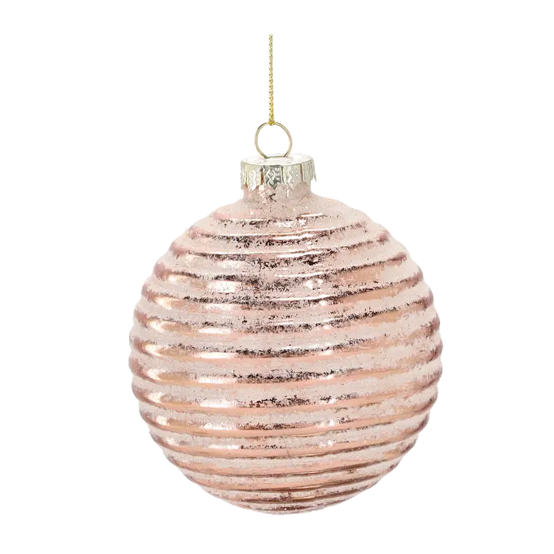 Ялинкова скляна кулька "Chomik" Ø 8 см, рельєф горизонтальний, рожево-золотава