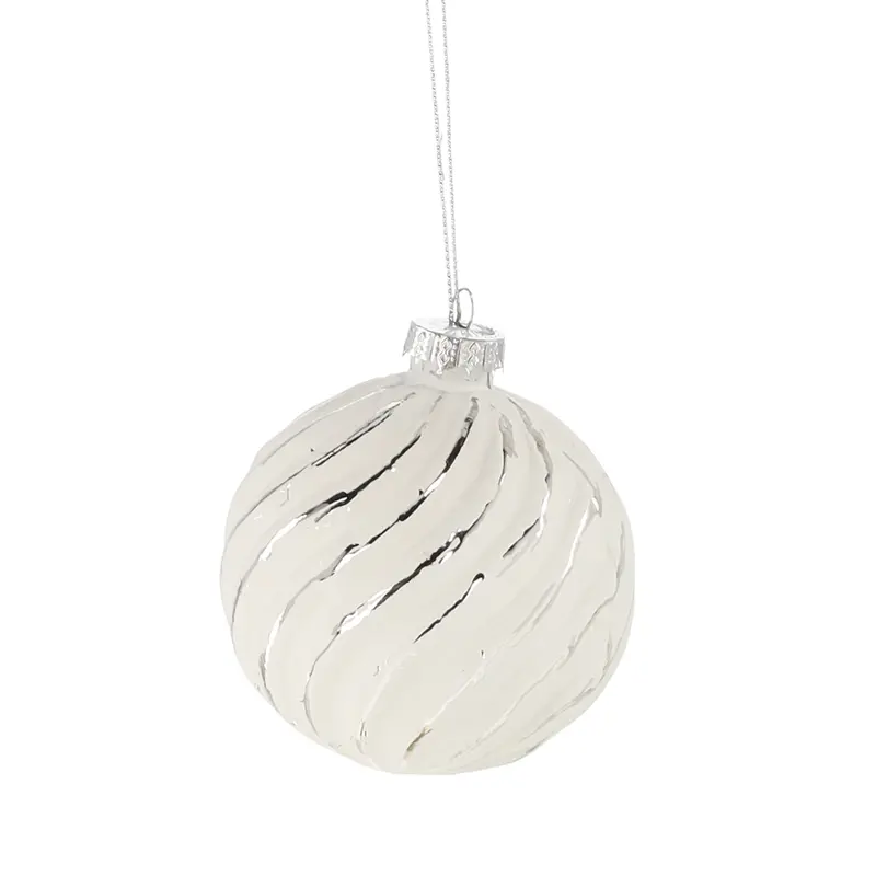 Ялинкова скляна кулька "Chomik" Ø 8 см, рельєф хвилястий, біло-срібляста