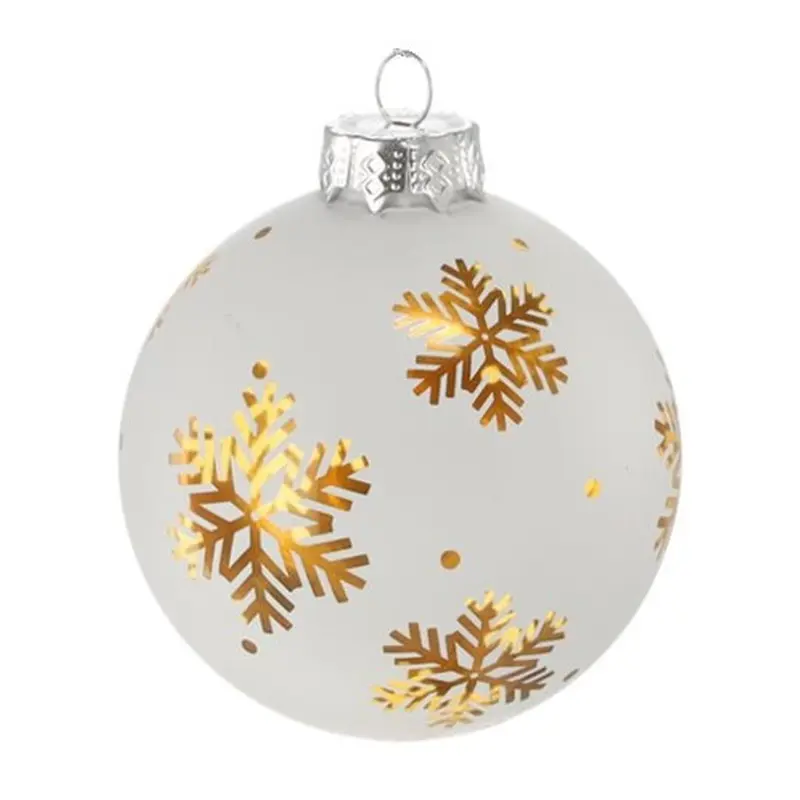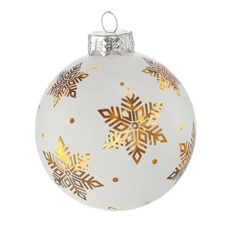 Скляна ялинкова кулька Chomik білого кольору — це вишукане поєднання декоративної класики та сучасного підходу до святкового оформлення. Декор кульки представлений у вигляді міксу сніжинок різних форм, які рівномірно розміщені по всій поверхні, створюючи ефект візуальної глибини та різноманіття. Завдяки компактному розміру та легкій вазі прикраса легко кріпиться навіть на найтонших гілках, не обтяжуючи конструкцію. Такий аксесуар гармонійно доповнює як класичні, так і сучасні стилі новорічного декору.Особливості Завдяки компактному розміру кулька добре підходить для декору ялинок будь-якої висоти та конструкції У комплекті передбачене кріплення на нитці, що забезпечує легке та безпечне розміщення на дереві чи інших елементах декоруВаріанти використання Прикраса для новорічної ялинки, де кулька з підсвіткою стає світловим акцентом серед інших елементів декору Частина зимової композиції на поличці, каміні або святковому столі, де вона виконує роль м’якого світильника Елемент фотозони або декорації для вітрини, який приваблює увагу завдяки поєднанню світла, текстури та форми Сувенір або приємний сезонний подарунок, що підійде для створення новорічного настрою в будинку друзів чи родини*Реальний колір товару може кілька відрізнятися від зразків, представлених на сайті, залежно від технічних налаштувань Вашого екрану, а також, враховуючи особливості матеріалу, відтінок товара може змінюватися залежно від освітлення.