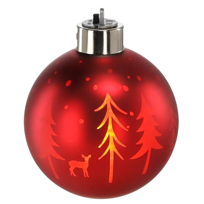 Ялинкова скляна кулька Chomik червона з LED підсвіткою 8 см, олені