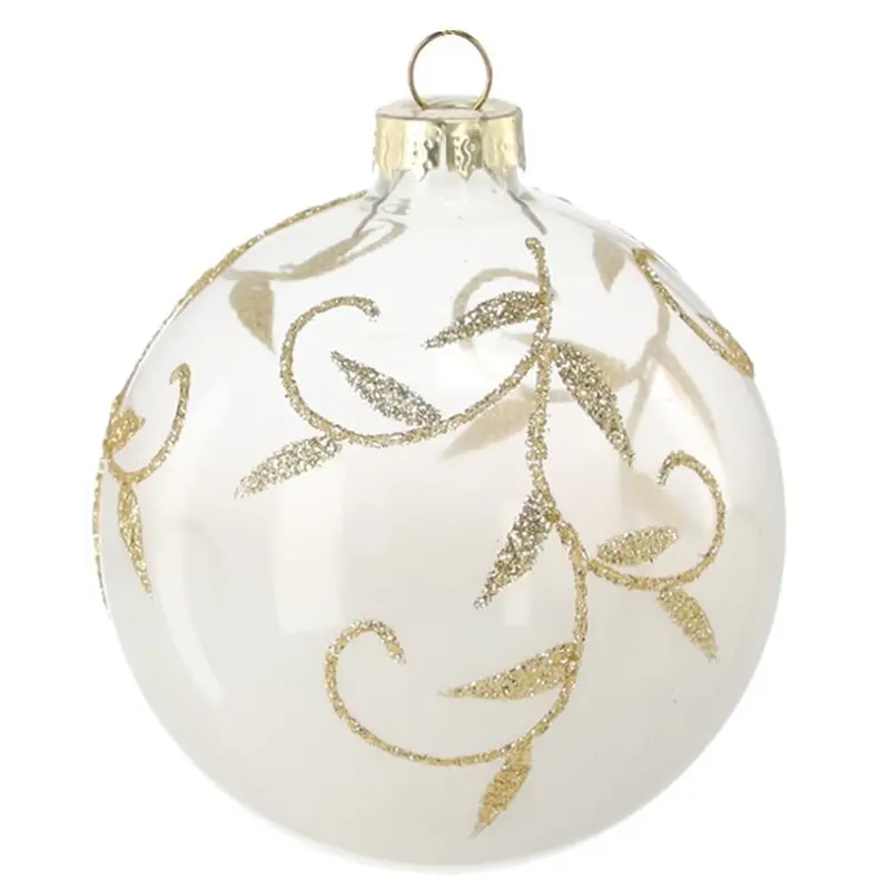 Ялинкова скляна прикраса Chomik біла, 8 см, візерунок гілка