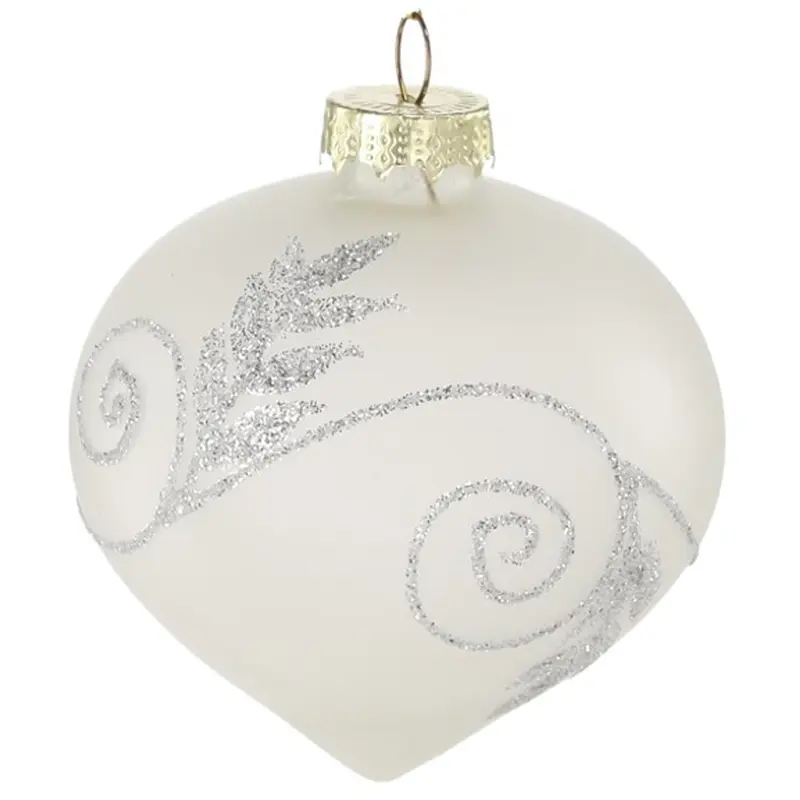 Ялинкова скляна прикраса Chomik біла з візерунком 8 см, дзига