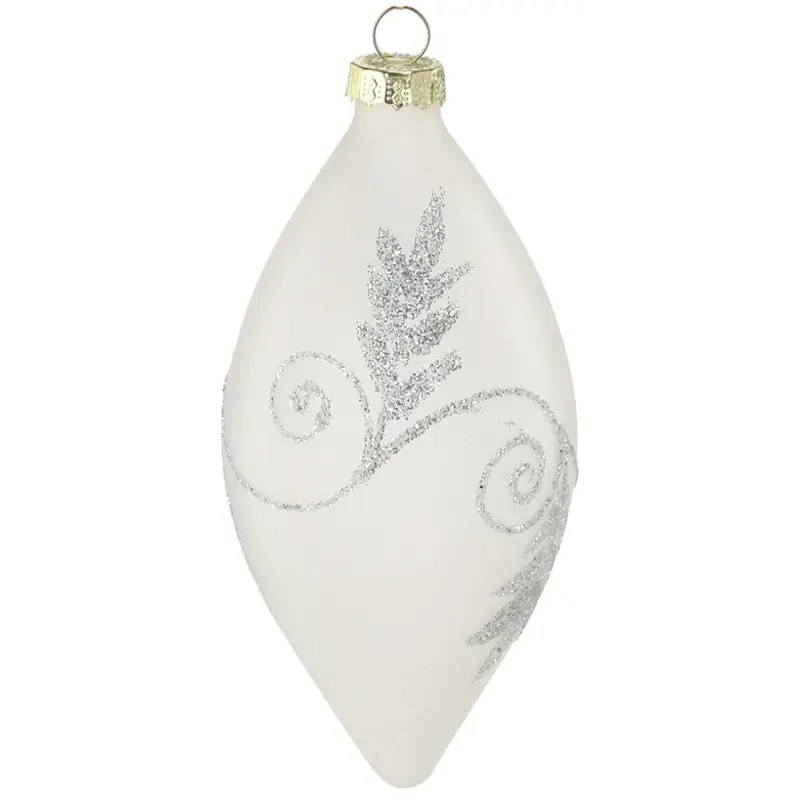 Ялинкова скляна прикраса Chomik біла з візерунком 8 см, овал