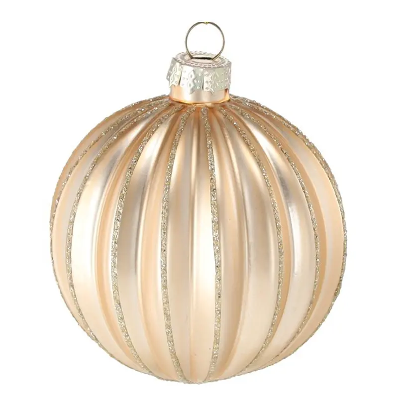 Ялинкова скляна прикраса Chomik шампань рельєфна 8 см, куля