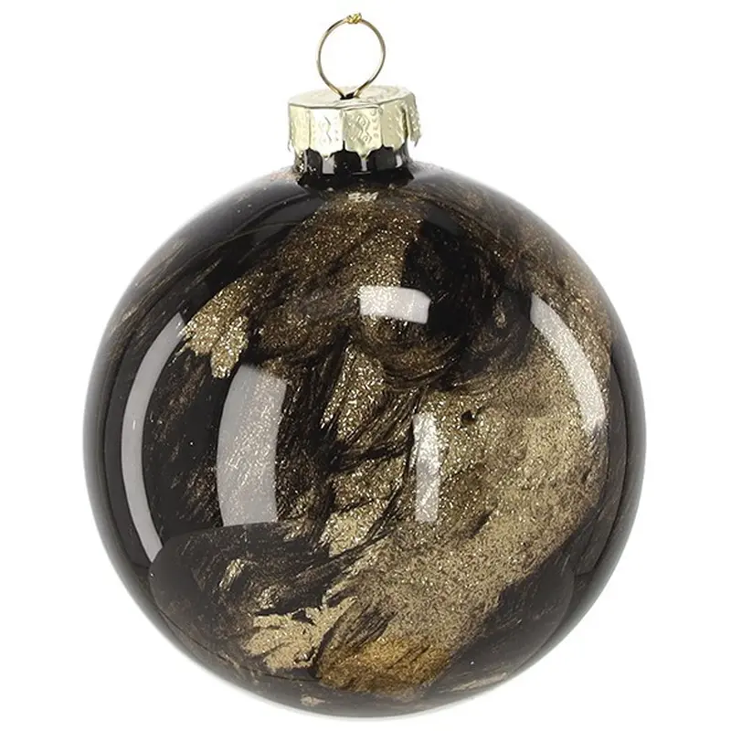 Ялинкова скляна прикраса Chomik золотисто-чорний мармур 8 см, куля