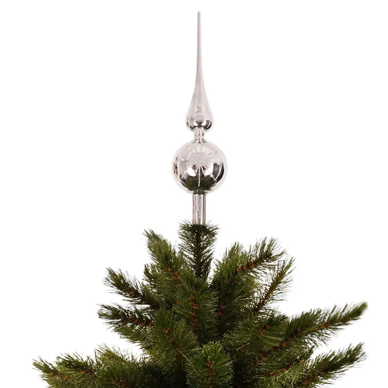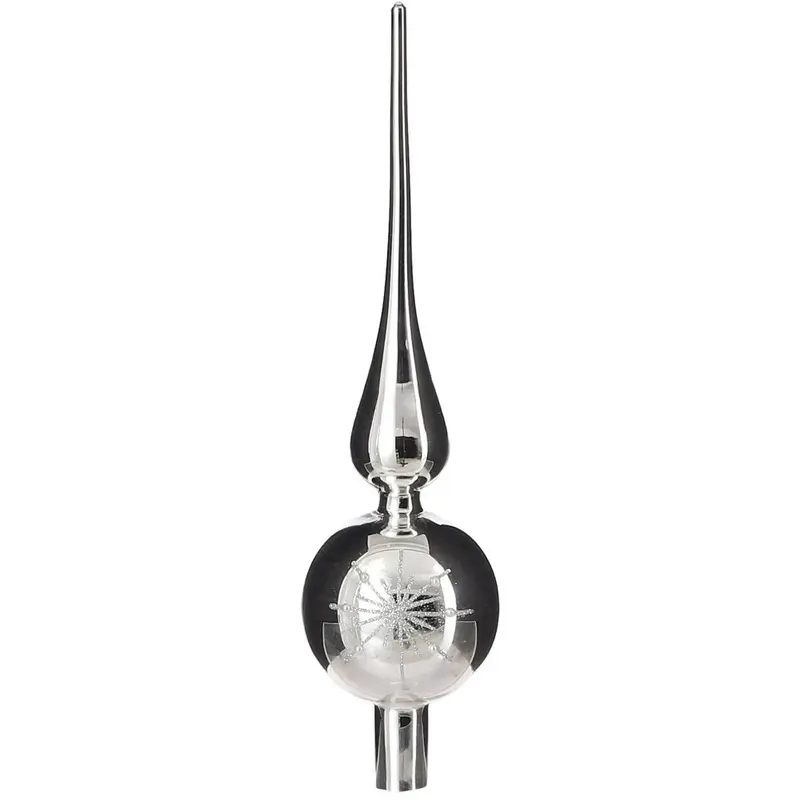 Ялинкова скляна верхівка 31 см Mica Decorations, срібно-біла, дзеркальна
