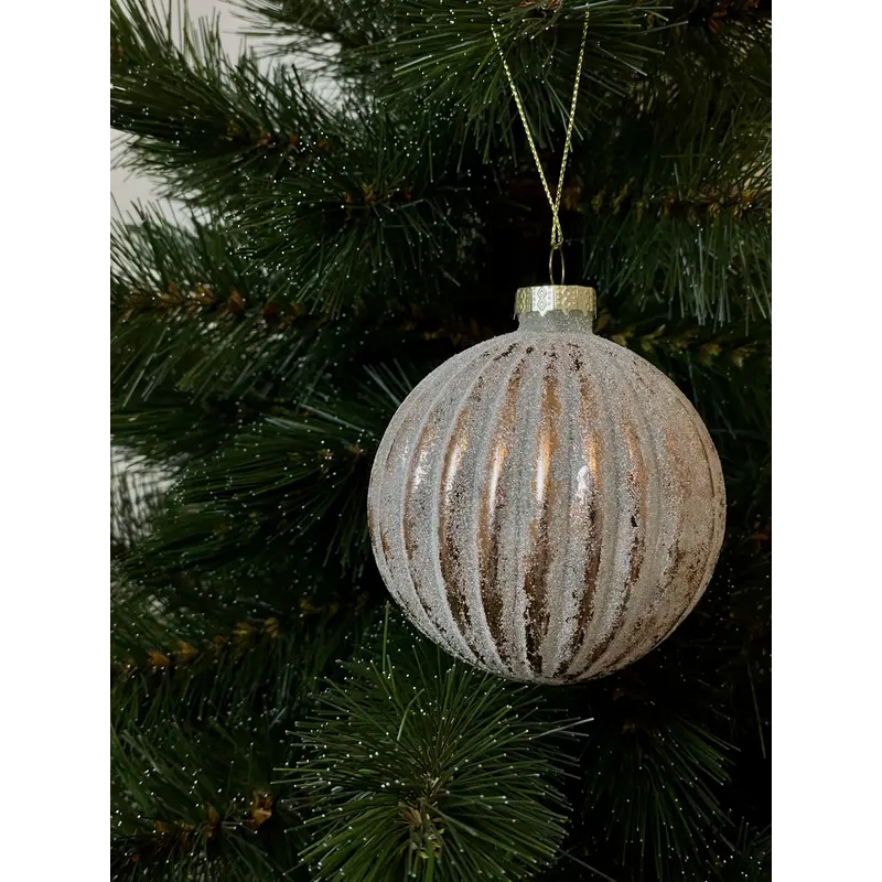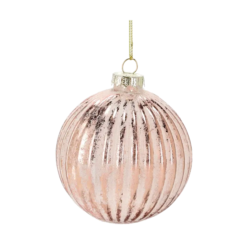 Ялинкова скляна кулька "Chomik" Ø 8 см, рельєф вертикальний, рожево-золотава