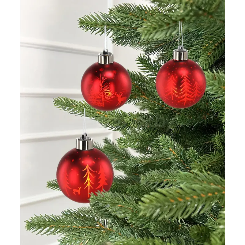 Ялинкова скляна кулька Chomik червона з LED підсвіткою 8 см, ялинки
