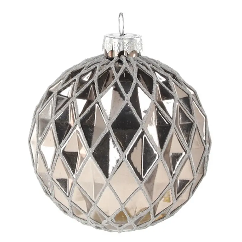 Ялинкова скляна кулька Chomik дзеркальна 8 см, рельєф ромб