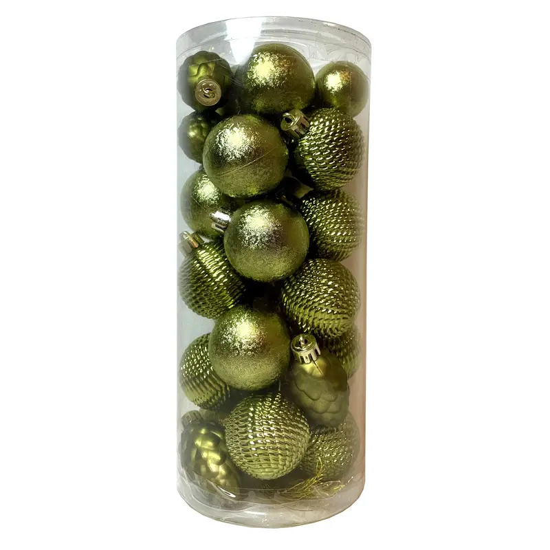 Ялинкові пластикові іграшки "Chomik" комплект 31 шт, Ø 3/4,5 см, оливкові