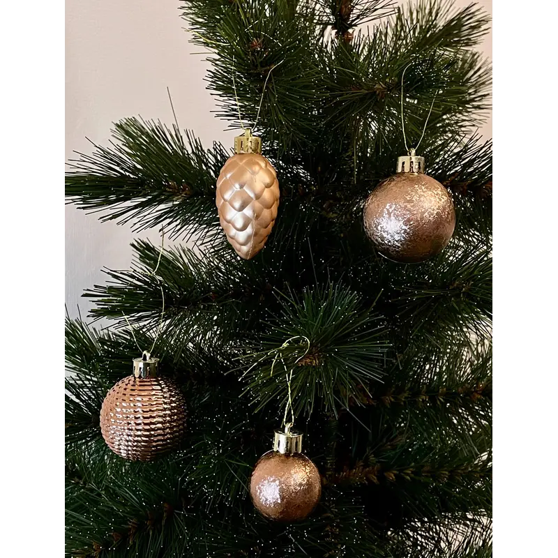 Ялинкові кульки — невіддільний новорічний елемент декору, без якого складно уявити різдвяну атмосферу.Особливістю набору є різноманіття покриттів та текстур (глянцеві рельєфні, ефект інею, матові) пластикових кульок, представлених у ніжному рожево-пудровому відтінку*, що дозволяє вишукано оздобити новорічне дерево у повноцінну святкову композицію. Структурна рельєфна поверхня додає кулькам оригінальності та шарму. Комплект особливо вдало виглядає на фоні зеленої хвої, а також впишеться у будь-який інтер'єр — залишається лише вдягнути іграшки на вашу ялиночку!*Реальний колір товару може дещо відрізнятися від зразків представлених на сайті залежно від технічних налаштувань Вашого екрану, а також, зважаючи на особливості матеріалу, відтінок товару може змінюватися залежно від освітлення.