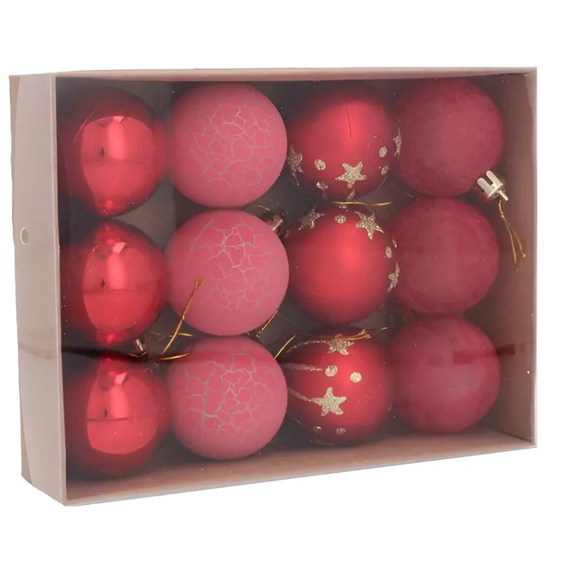 Ялинкові пластикові кульки Chomik комплект 12 шт, Ø 5см, червоні
