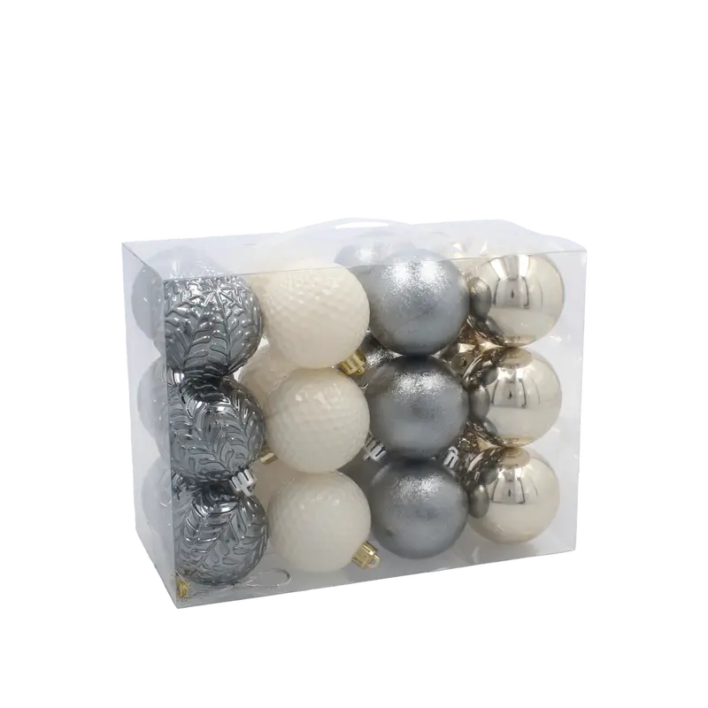 Ялинкові пластикові кульки Chomik комплект 24шт, Ø 6см, мікс кольорів