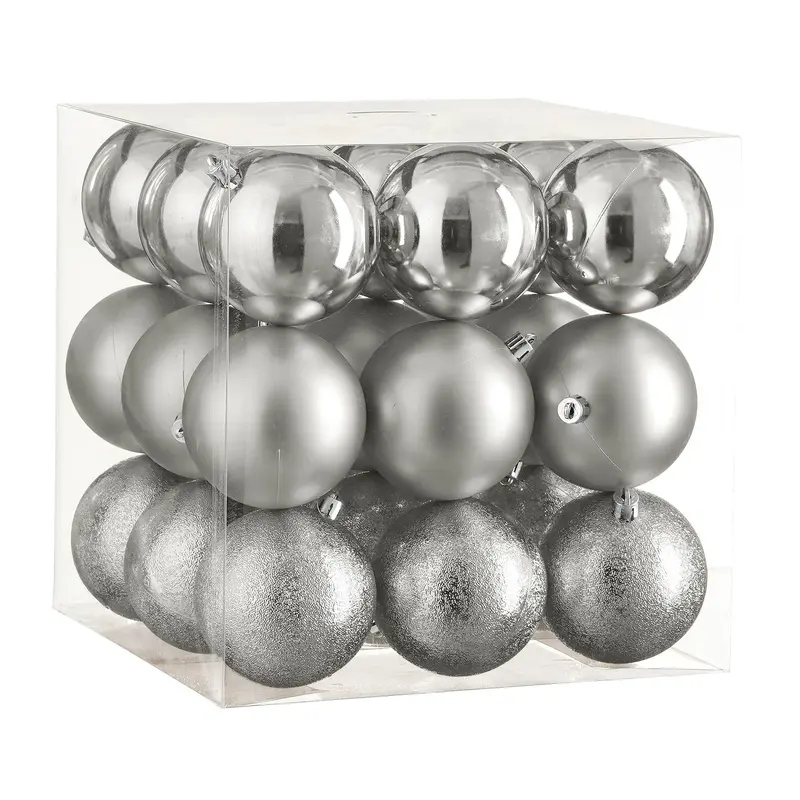 Ялинкові кульки — невіддільний новорічний елемент декору, без якого складно уявити різдвяну атмосферу. У нашому комплекті — казкове поєднання кульок великого розміру різних покриттів у приємному сріблястому відтінку*, які особливо вдало виглядають на фоні зеленої хвої, а також впишуться у будь-який інтер'єр. Різноманіття покриттів кульок:• матові - 9 шт; • глянцеві - 9 шт;• рельєфні блискучі - 9 шт — створять стильну композицію новорічного дерева. Залишається лише вдягнути прикраси на вашу ялиночку!Прикраси ТМ House of Seasons — чудовий елемент декору як для новорічного дерева, так і для святкового оздоблення оселі чи офісу, що створять затишок та принесуть позитивний настрій. Асортимент підібраний з урахуванням можливості поєднання різних серій прикрас ТМ House of Seasons.*Реальний колір товару може дещо відрізнятися від зразків представлених на сайті залежно від технічних налаштувань Вашого екрану, а також, зважаючи на особливості матеріалу, відтінок товару може змінюватися залежно від освітлення.