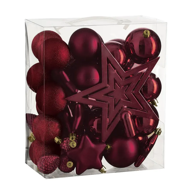 Ялинкові пластикові кульки і прикраси "House of Seasons" комплект 40 шт, Ø 8/7/6 см, бордові