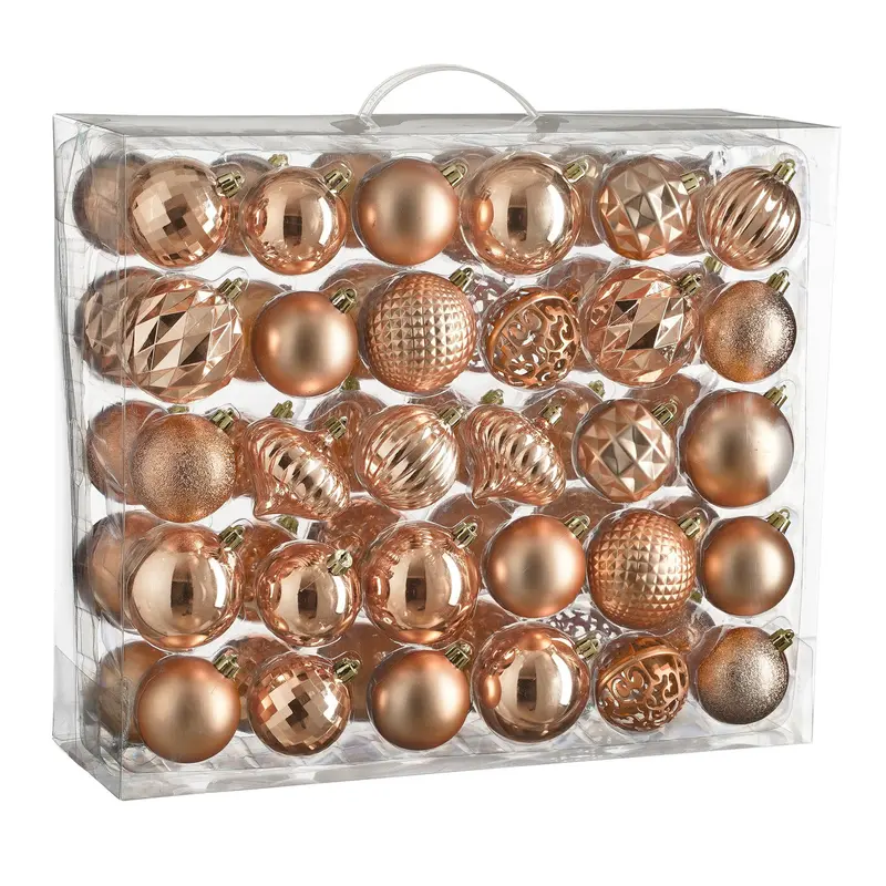Ялинкові пластикові кульки і прикраси "House of Seasons" комплект 60 шт, Ø 7/6 см, персик