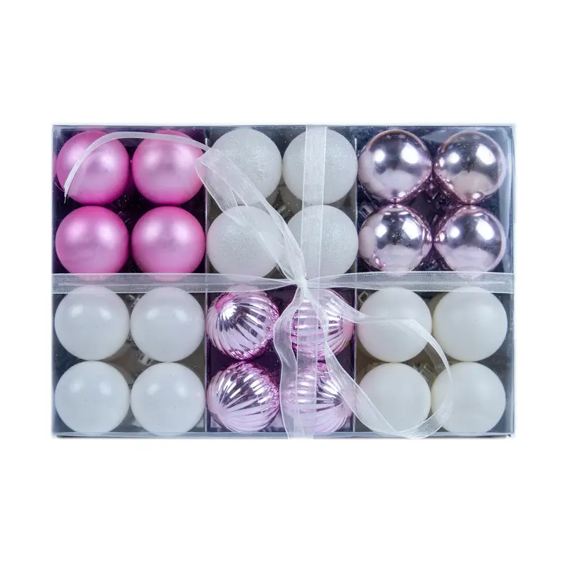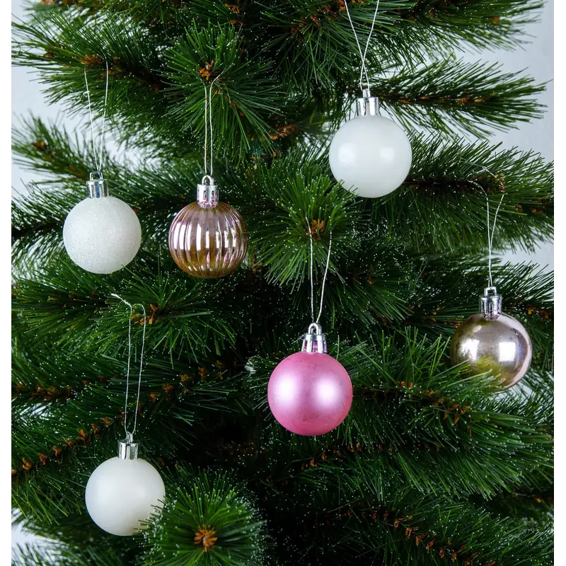 Набір ялинкових кульок Jumi — це універсальне і стильне рішення для святкового оформлення в світлій і ніжній кольоровій гамі. У комплект входить 48 пластикових кульок діаметром 4 см, оформлених в білих і лілово-рожевих відтінках з різними типами поверхні: матовою, глянцевою, з блискітками і рельєфом. Завдяки різноманітності фактур і гармонійному поєднанню кольорів, прикраси дозволяють створити об'ємну, збалансовану композицію на ялинці. Компактна упаковка в картонній коробці робить набір зручним як для зберігання, так і для подарунка.Особливості Кулі виготовлені з легкого, ударостійкого пластику, що робить їх безпечними при використанні в будинках з дітьми або тваринами. У набір входять: 8 білих куль з блискітками, 16 білих матових, 8 рожевих матових, 8 рожевих глянцевих і 8 рожевих рельєфних глянцевих прикрас. Оптимальний діаметр — 4 см — дозволяє використовувати кулі на ялинках будь-якого розміру, не перевантажуючи гілки і зберігаючи візуальну легкість композиції. Наявність різних текстур надає оформленню об'єм, глибину і виразність, особливо в поєднанні з гірляндами і стрічками. Естетична упаковка у вигляді прозорої коробки з бантом робить комплект привабливим для подарунка і зручним для зберігання після свят.Варіанти використання Декорування новорічної ялинки — кулі можна розподілити рівномірно або використовувати для створення акцентних зон і колірних переходів. Оформлення настільних композицій, вінків і гірлянд — компактний розмір дозволяє органічно вписати прикраси в інтер'єрні елементи. Прикраса вітрин магазинів або кафе — м'які відтінки і блиск роблять декор виразним і в той же час витонченим. Використання в прозорих вазах, скляних келихах або на підносі як елемент святкового сервірування столу. Додавання в подарункову упаковку або як частина новорічної фотозони — кулі створять настрій затишку і чарівності.*Реальний колір товару може дещо відрізнятися від зразків, представлених на сайті, залежно від технічних налаштувань Вашого екрану, а також, з огляду на особливості матеріалу, відтінок товару може змінюватися залежно від освітлення.