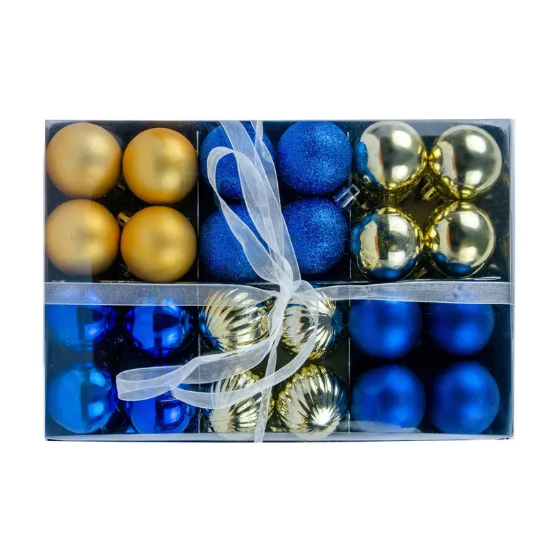 Ялинкові пластикові кульки "Jumi" комплект 48 шт, Ø 4 см, мікс синій-золотий