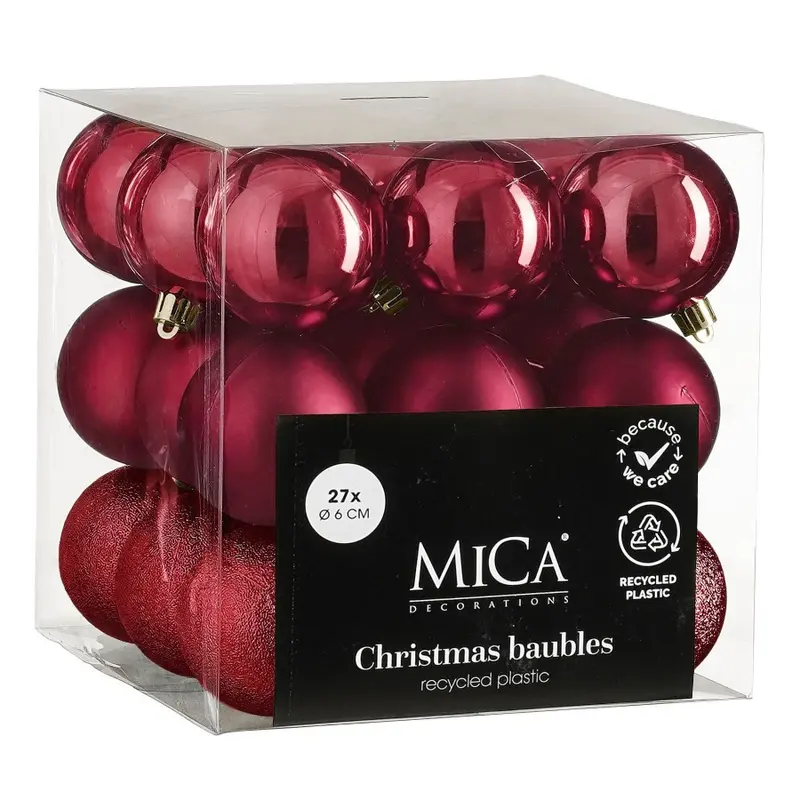 Ялинкові пластикові кульки Mica Decorations комплект 27 шт, Ø 6 см, вишневі