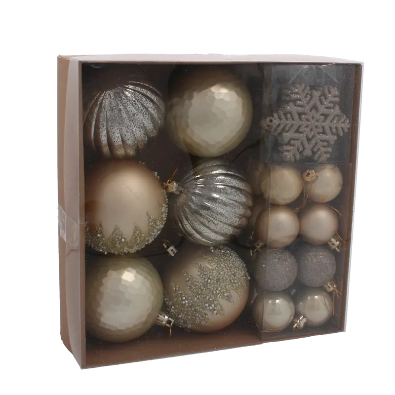 Ялинкові пластикові прикраси Chomik "Кульки, сніжинки", компл. 30шт, шампань
