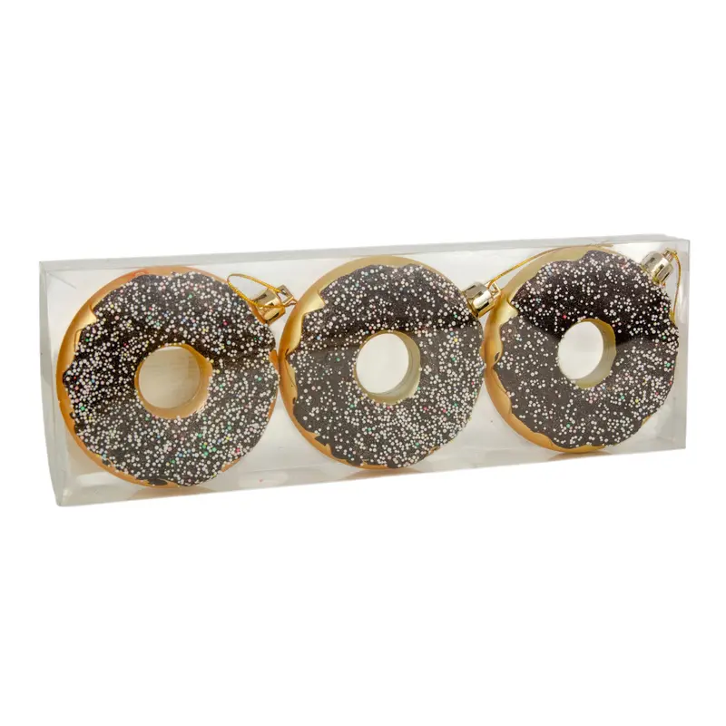 Ялинкові пластикові прикраси Chomik Пончики комплект 3шт, Ø 8см, коричневі