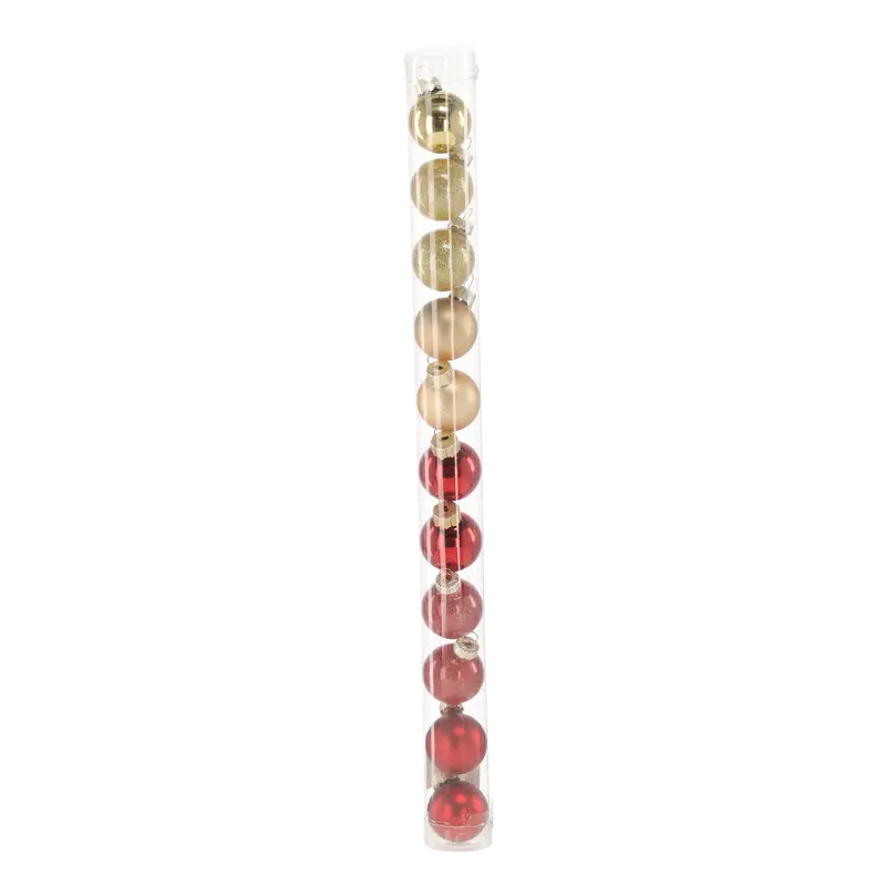 Ялинкові скляні кульки "Chomik" комплект 11 шт, Ø 3 см, червоні, золото