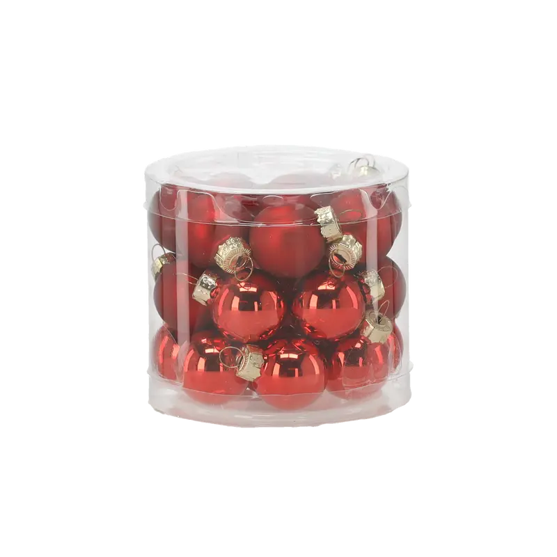 Ялинкові скляні кульки Chomik комплект 24 шт, Ø 2,5 см, червоні