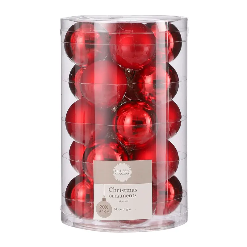 Ялинкові скляні кульки "House of Seasons" комплект 20 шт, Ø 4 см, червоні