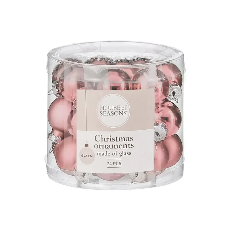 Ялинкові скляні кульки "House of Seasons" комплект 24 шт, Ø 2,5 см, рожеві
