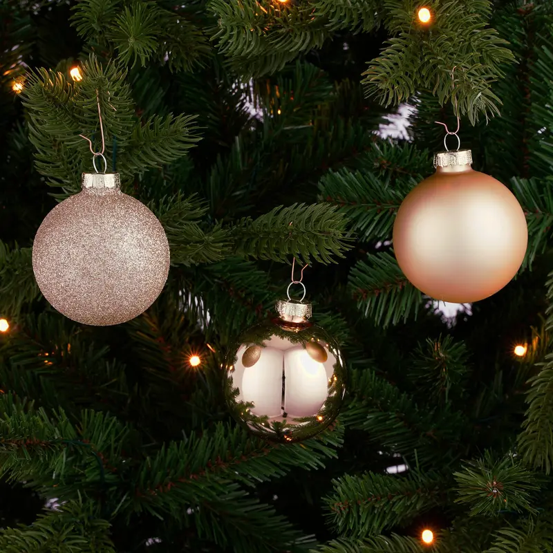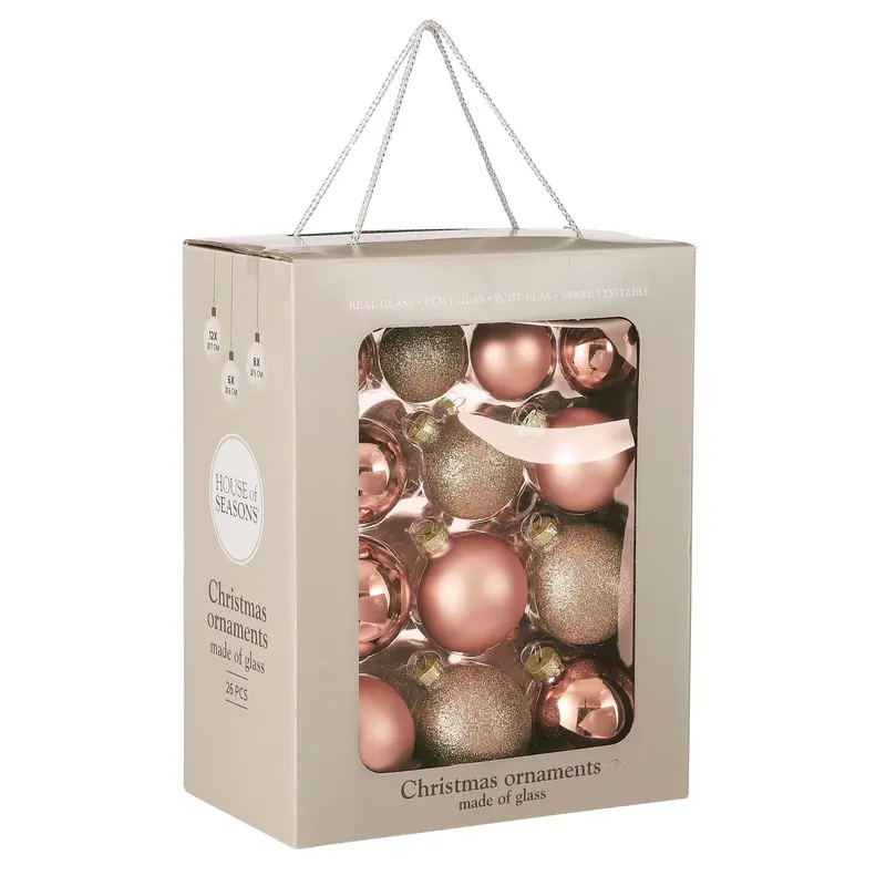 Ялинкові скляні кульки "House of Seasons" комплект 26 шт, Ø 7/6/5 см, персик