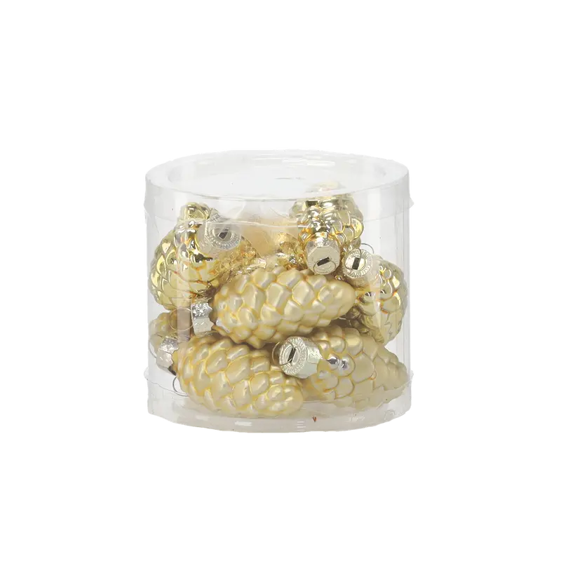 Ялинкові скляні прикраси Chomik Шишки комплект 16 шт, 3х6 см, золотисті