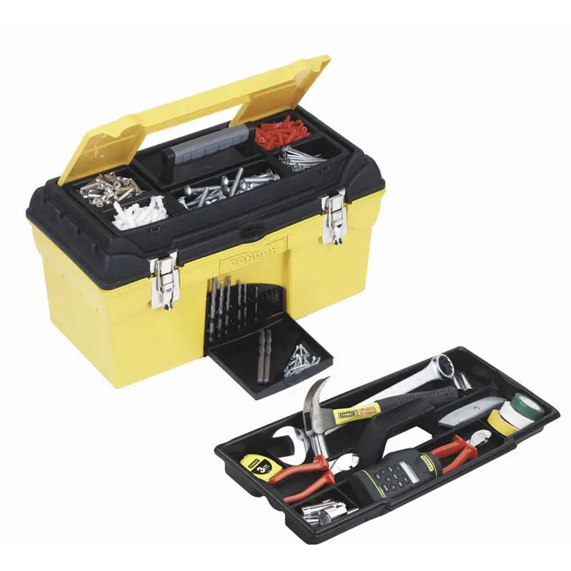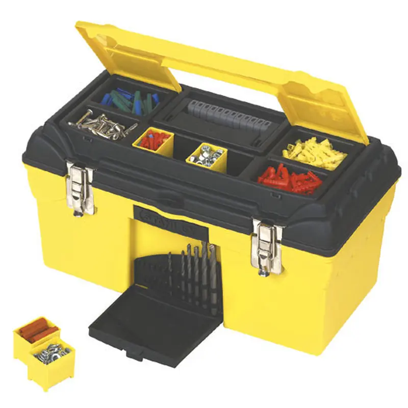 Інструментальний Ящик 48 см фліп д/свердел STANLEY 1-92-055 Ящик для інструменту "Condor" пластмасовий з органайзерами і металевими замками.Відділення для зберігання сверделСекції для зберігання аксесуарів зі знімними відділеннями в кришціМожливість замикання скриньки з допомогою навісного замку (замок в комплект поставки не входить)Металеві замкиЗнімний лоток для аксесуарівРучка з двох матеріалів