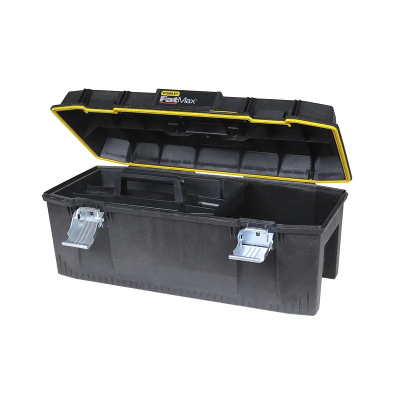 Ящик для інструментів STANLEY професійний вологозахисний "FatMax" 58,4 X 30,5 X 26,7 см 1-94-749 Ящик для інструменту професійний "FatMax" з структулена вологозахисний.Ящик підвищеної міцності та ємностіВодозахисне ущільнення по периметру скриньки для виняткової захисту вмістуПереносний лоток для транспортування інструменту і дрібних деталей, при цьому в ящику залишається місце під великий інструмент, оскільки довжина лотка становить 3/4 від довжини скринькиВиготовлений з структулена для забезпечення жорсткості і міцностіВеликі металеві з захистом від корозії замки з можливістю використання навісного замка (в комплект поставки не входить)V-подібний паз в кришці ящика для зручності розташування деталі при пилянніМіцна ергономічна ручка з м'якими вставками дозволяє з легкістю переносити важкі речі