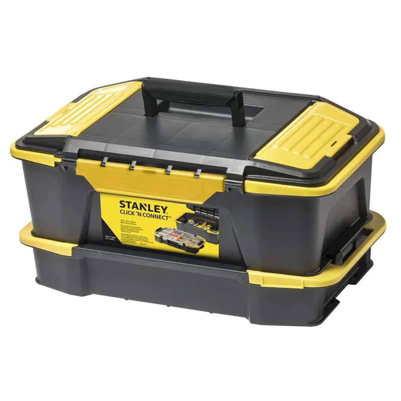 Ящик для інструменту пластик CLICK & CONNECT (система зберігання) (51х31х17см) STANLEY STST1-71964 - Розмір 507х310х168мм.- Можливість з'єднання декількох модулів - Переставні перегородки - Замок, що відкривається однією рукою- Додаткові відсіки зберігання в кришках модулів