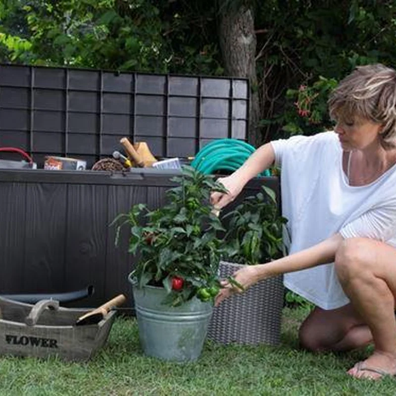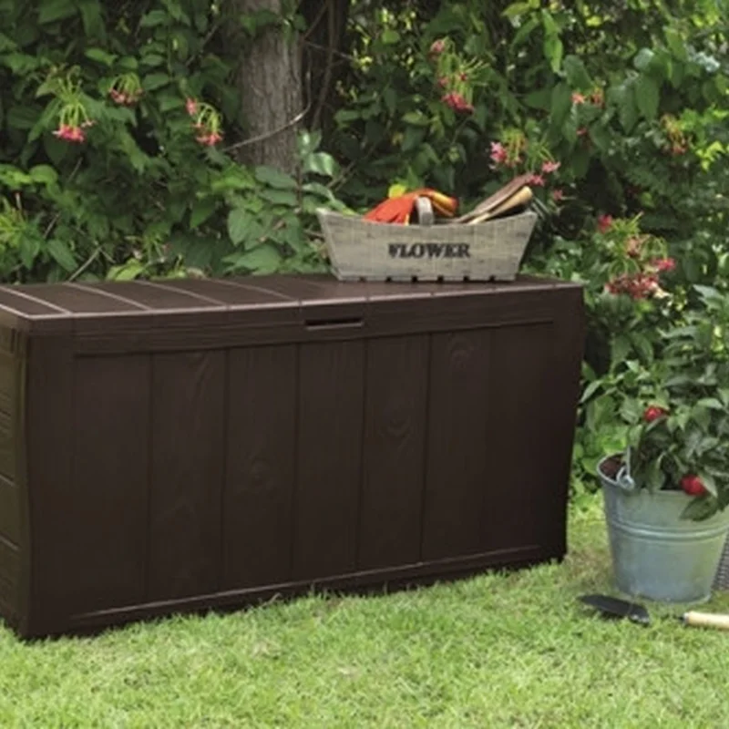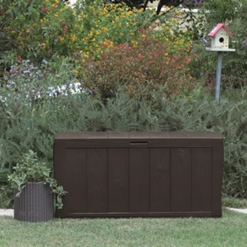 Простота форми, функціональність і швидкий монтаж - це переваги універсального скрині SHERWOOD STORAGE BOX, призначеної для зберігання різних інструментів, наприклад, лопат, обприскувачів, секаторів, ножиць. Класична кольорова гамма і поверхня нагадує фактуру деревини, дозволяє розмістити скриня в будь-якому садовому оточенні.