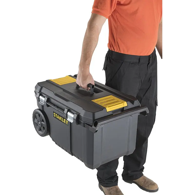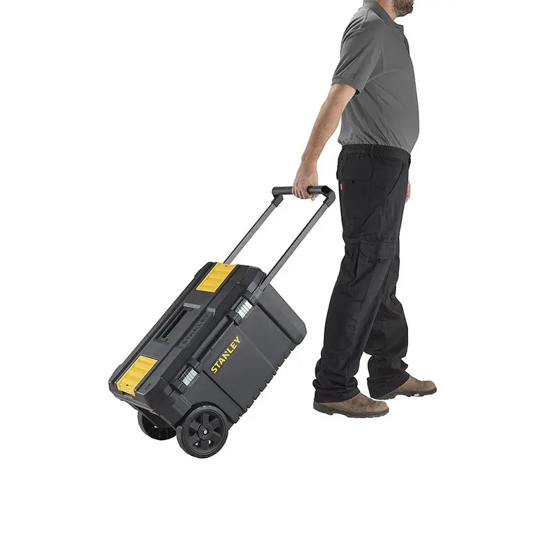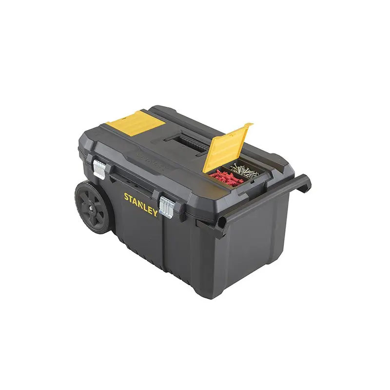Ящик на колесах інструментальний 66.5x40.5x34.5см ESSENTIAL STANLEY STST1-80150 - Органайзери в кришці ящика для зберігання кріплення і дрібних деталей- Великі високоміцні колеса діаметром 7 для зручності переміщення- V-образний жолобок в кришці для фіксації матеріалів при пилянні- Металеві замки і металева телескопічна ручка- Вушка для використання навісного замка (в комплект поставки не входить)- Зручний витягають лоток для інструментів