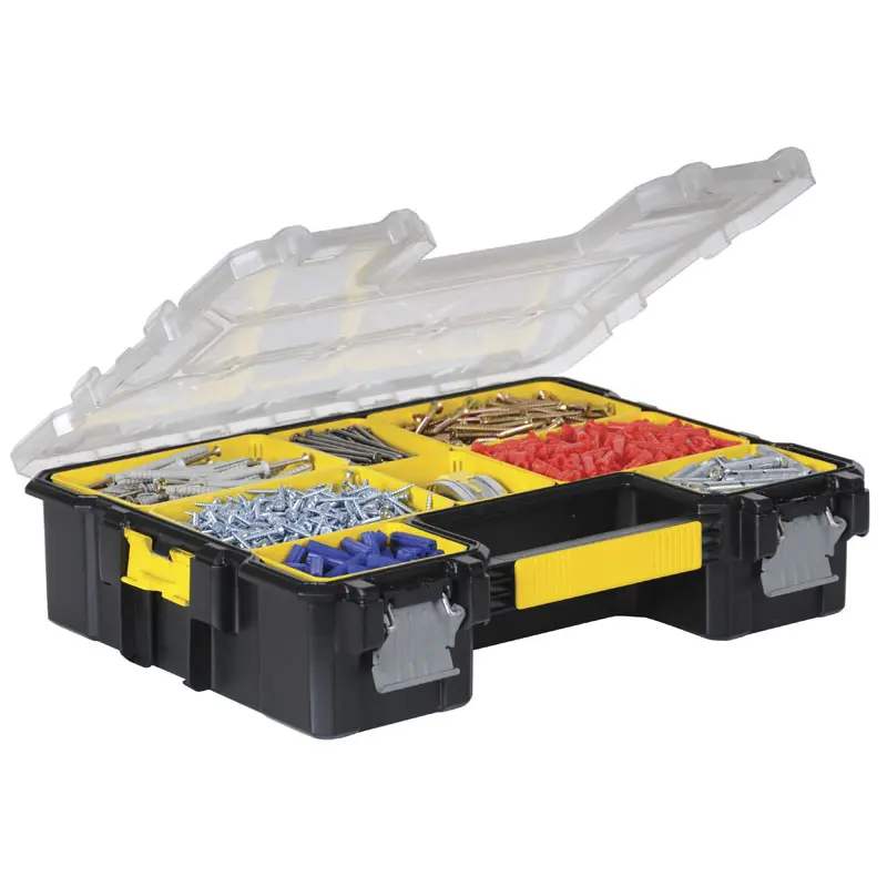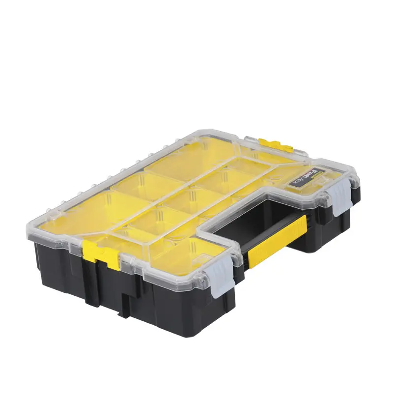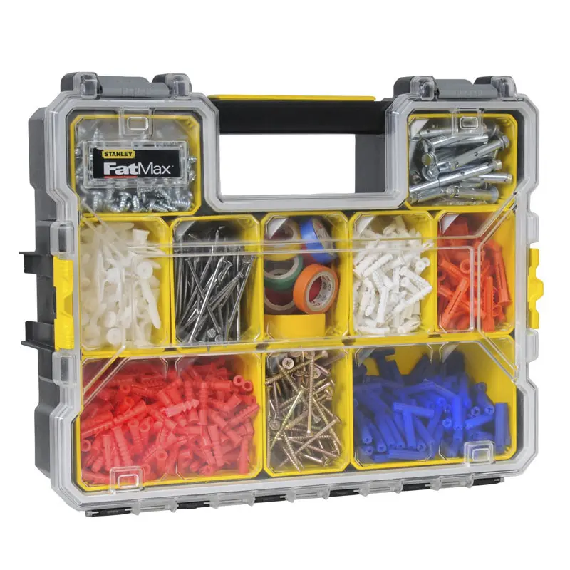 Інструментальний Ящик-органайзер пластмасовий (44,6 x x 11,6 35,7) STANLEY 1-97-521 Органайзер професійний "FatMax Deep Pro Plastic Latch" пластмасовий.Знімні відділення для дрібних деталей та аксесуарівУдаростійка прозора кришка з полікарбонату має унікальну конструкцію, утримуючу відділення для зберігання на місціВисокоміцні ручка і замкиНе виступає за габарити органайзера широка ручка для зручності перенесення і зберіганняЗамки з боків для надійного скріплення декількох органайзерів при розміщенні їх один на одного
